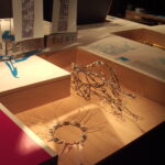 Conception et fabrication par les ateliers de la ville de Paris, d’une seule et unique table de 2,26 x 8,40 mètres, dans laquelle chaque objet de chaque créateur trouve sa place.